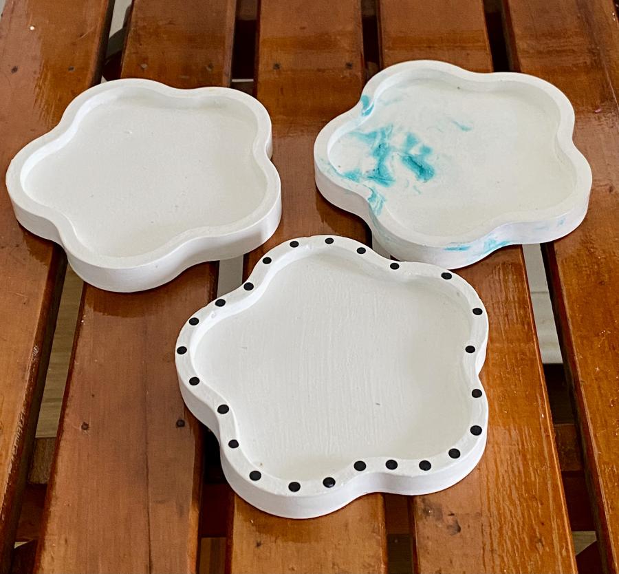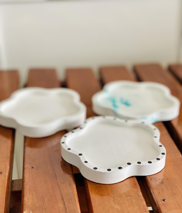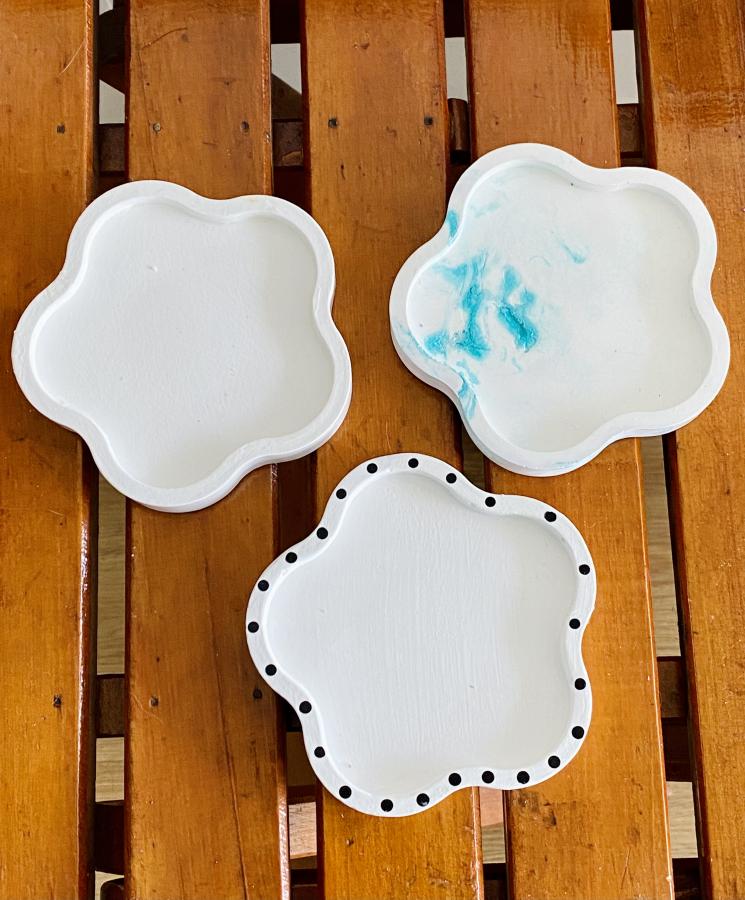 Bandeja Bloom: la decoración que florece. Diseño orgánico de flor, rompe la monotonía y añade un toque fresco. Ideal como plato para joyas y velas. Material: Yeso y cemento. Medidas: Diámetro 10 cm x Alto 1.3 cm. Sellada y barnizada