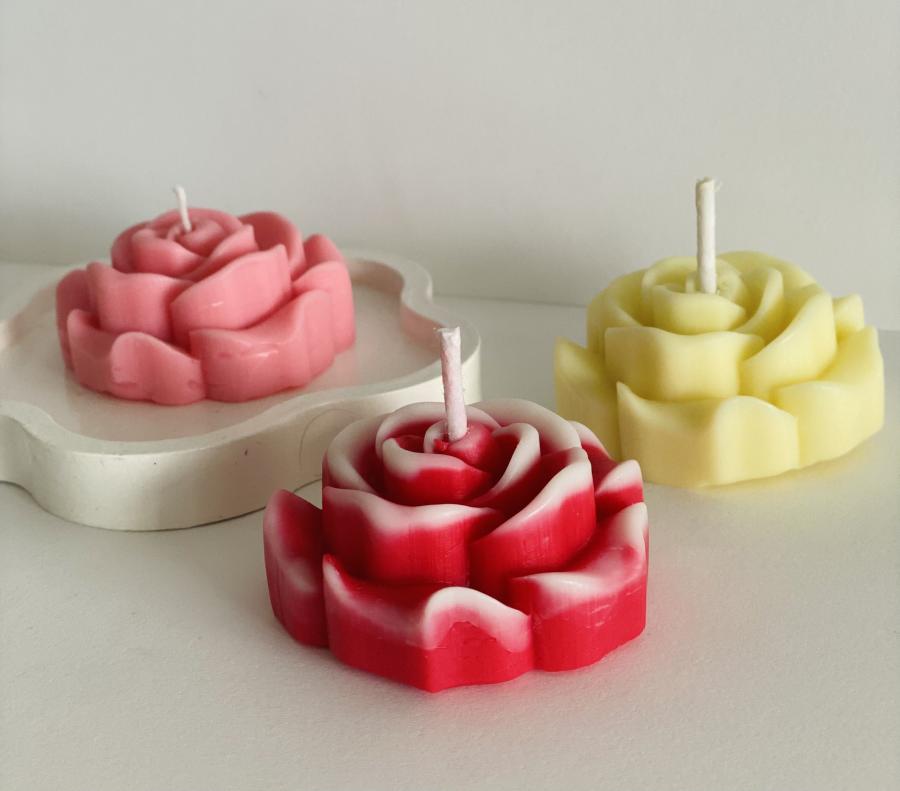 Vela Rosa Romántica. Un clásico. Ideal para regalar y crear un ambiente íntimo y elegante. Material: Cera de soja. Medidas: Diámetro 6 cm x Alto 2.5 cm
