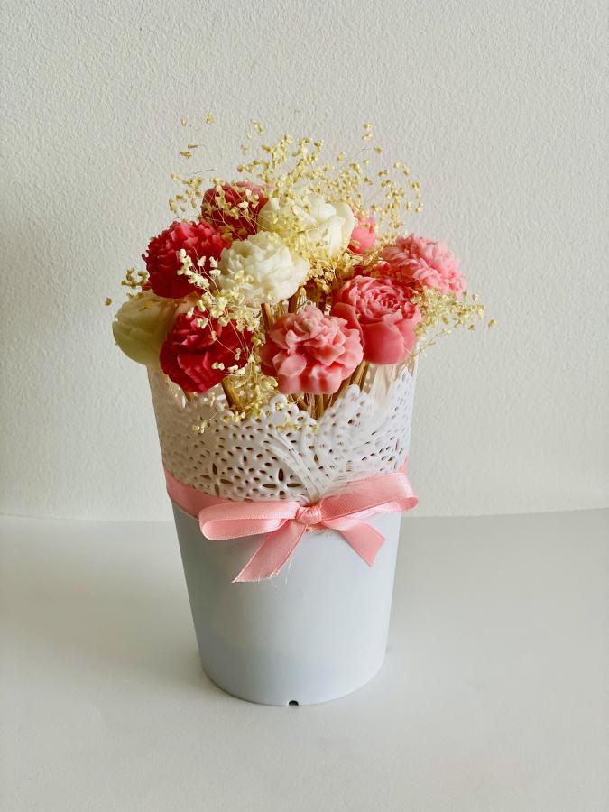 Bouquet Rosas Wax Melt. Piezas de cera de soja con forma de flores para derretir en quemador. Perfuma tu ambiente con la esencia floral más intensa. Material: Cera de soja. Medidas: Alto 18cm x Diametro 11cm. Aprox entre 10-14 unidades/set.