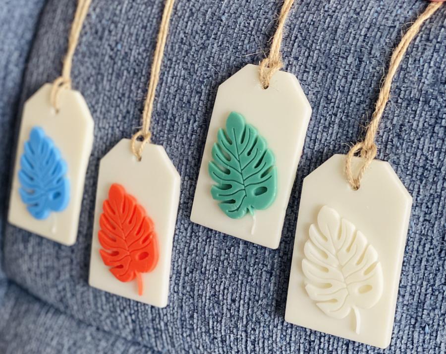 Ambientador de cera de soja con diseño botánico. Difunde tu aroma favorito en cajones, armarios o donde tu prefieras. Perfuma tu ropa naturalmente. Material: Cera de soja. Medidas:Alto 9.5 cm x Ancho 5.5 cm x 0.5 grosor.