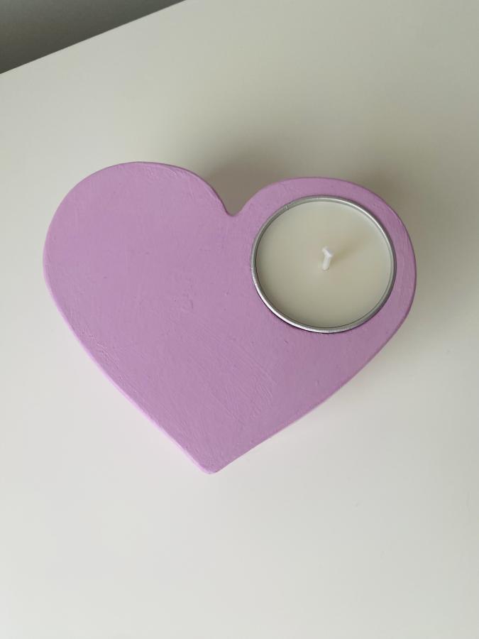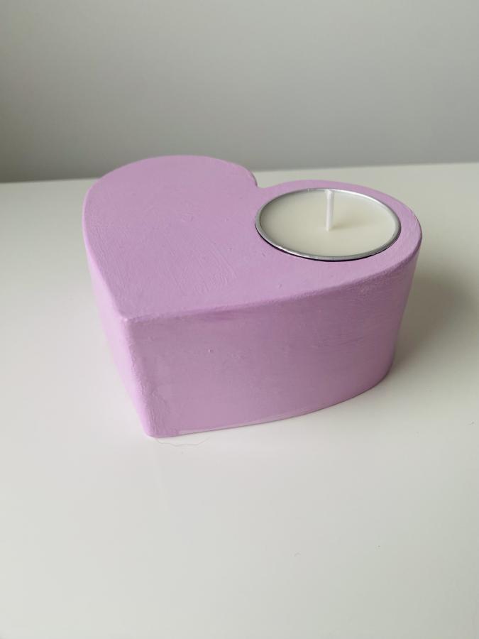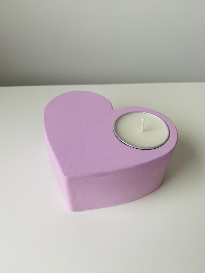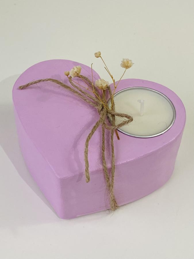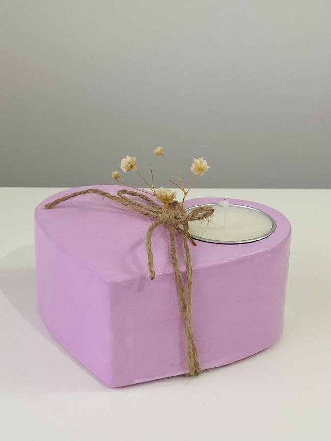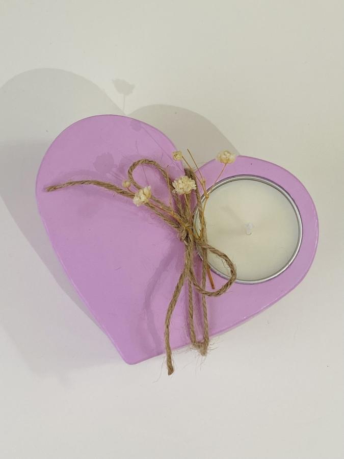 Cuenco artesanal forma corazón con velita en lata. Material: Yeso/Cemento y cera de soja. Diseño y luz en un solo objeto✨ Medidas: 11 cm x 9cm x 4.5 Alto cm.