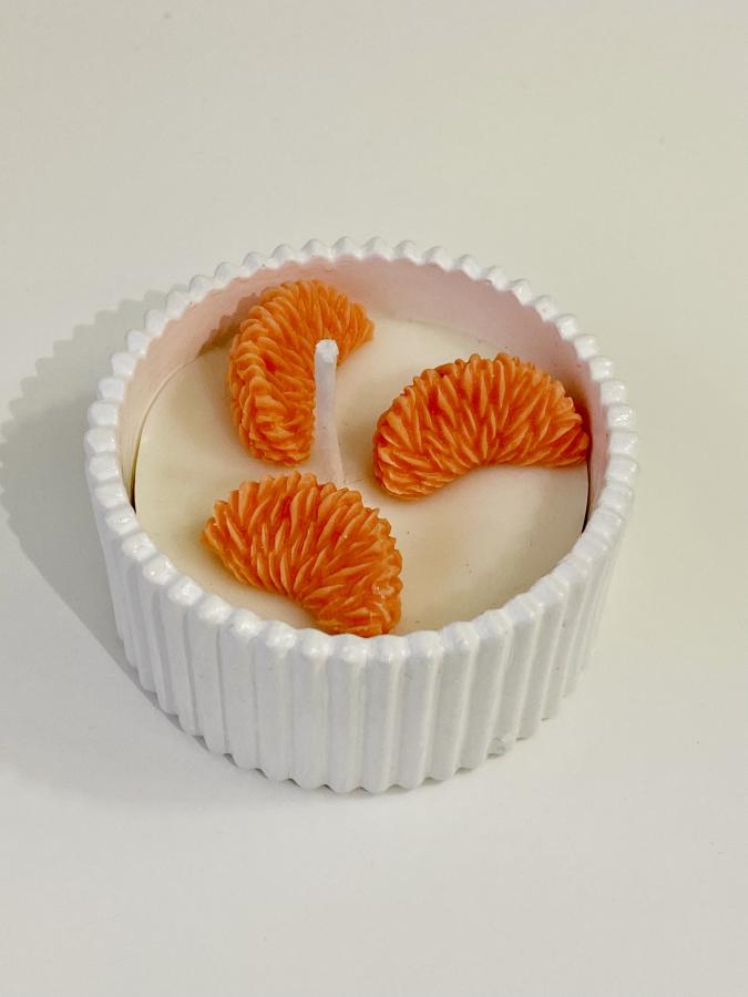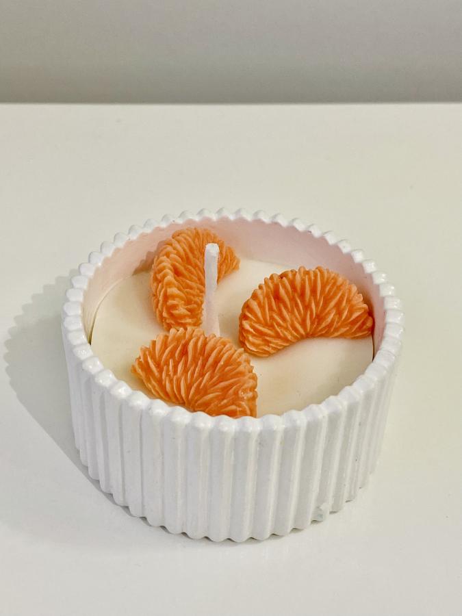Un diseño vibrante con rodajas de naranja de cera de soja. Medidas: Base 10 cm x Alto 5cm. Material: Yeso/Cemento y soja. Aporta un toque cítrico y fresco a tu decoración favorita 🍊🍃